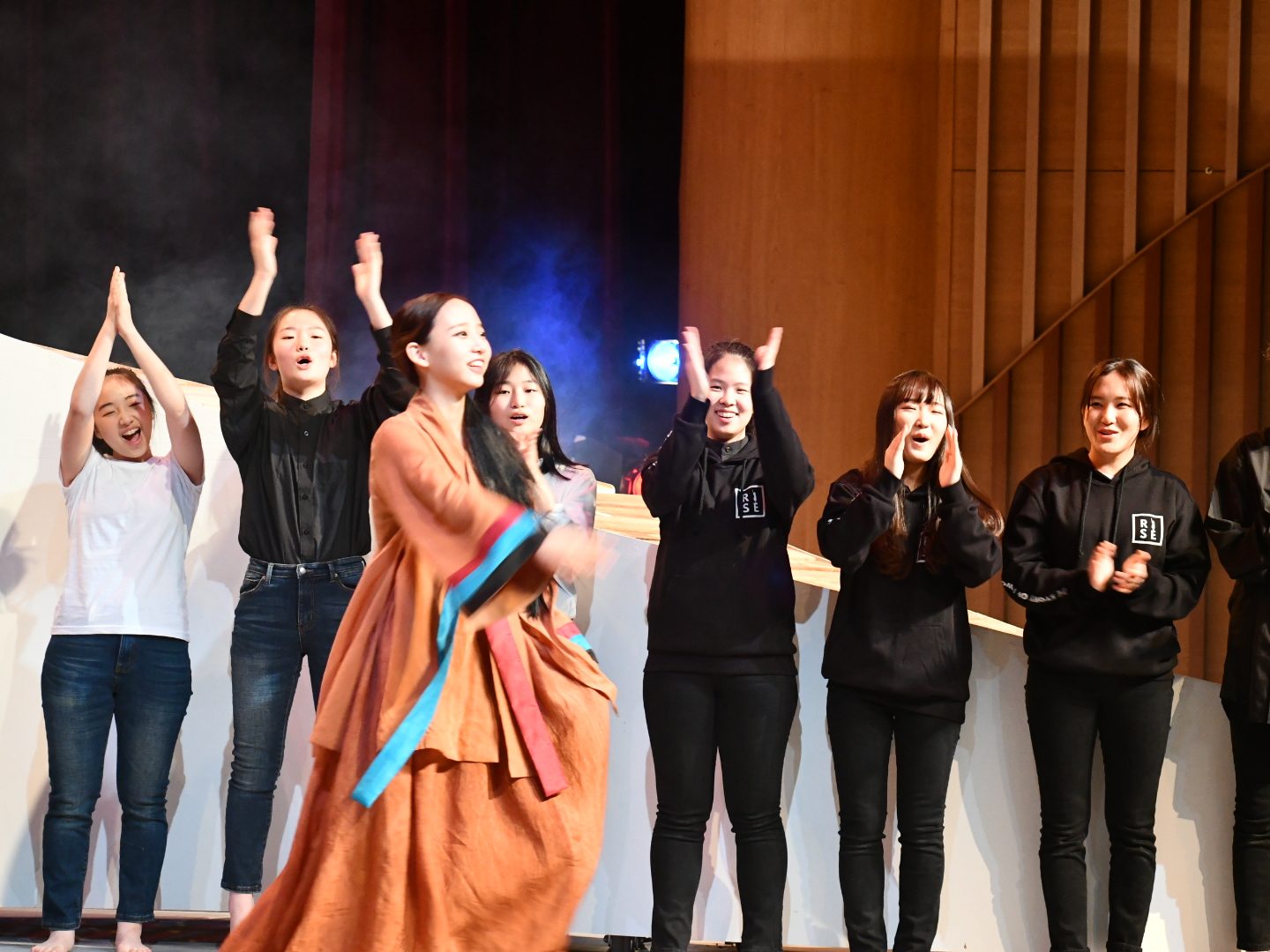 I came back to the group a little while later with a proposal for a modern day story which I thought contained the right amount of catastrophe, drama and sacrifice to echo Mandeok’s own life. The students did not approve (objecting to some of the stories more dramatic elements on moral grounds) and I was sent away to think again. In the intervening period the students gave a feedback performance of short scenes based on their own responses to our Kim Mandeok research day. These performances were physically powerful and politically engaged, and it was immediately apparent from these sketches that I needed to increase the political and intellectual content of the storyline to meet their interests and maturity.